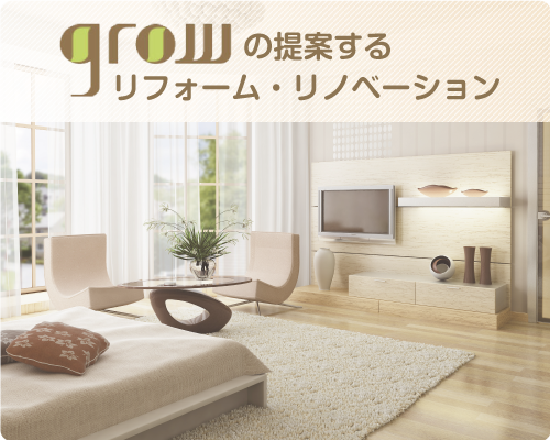 株式会社growのリフォーム工事、リノベーション工事では、色の空間、利用価値のある広い空間、健康を配慮した空間、家族の談話がより多くなる空間をお作り致します。