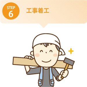 いよいよ工事の始まりです。工程表に基づいて安全管理、施工管理を徹底し、騒音、工事車両の駐車など、近隣の方々へご迷惑がかからないよう、細心の注意を払いながら、工事を進めていきます。工事中のご質問やご要望について担当者にお気軽にお尋ねください。